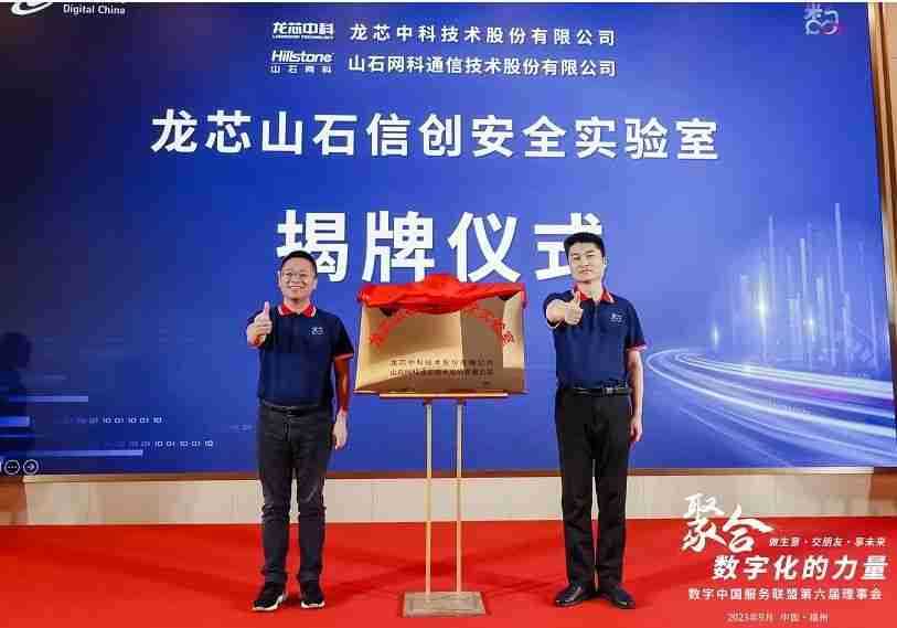 联盟秘书处马郭波对数字中国服务联盟过往的工作进行了总结汇报,,,,回顾了联盟近三年来发展壮大历程,,展示了联盟伙伴间交流合作的创新探索成果:从解决方案资源池建设、、、工程师共享计划尝试,,,,到全聚合公司平台打造。。。。并简单阐述了对于联盟的未来发展思路的规划与畅想。。。正因有了全聚合的平台,,联盟成员之间的合作再上新的台阶。。。现场,,,两家联盟成员单位领导:山石网科首席运营官叶海强与龙芯中科副总裁张戈上台共同为龙芯山石信创安全实验室举行揭牌仪式。。此次合作实现了优势互补,,互惠互利共同发展格局。。。双方希望通过发挥各自拥有的品牌优势、、、地域优势及技术优势进行紧密合作,,,联合发起成立信防安全实验室,,,,打造双赢可持续发展合作伙伴关系。。