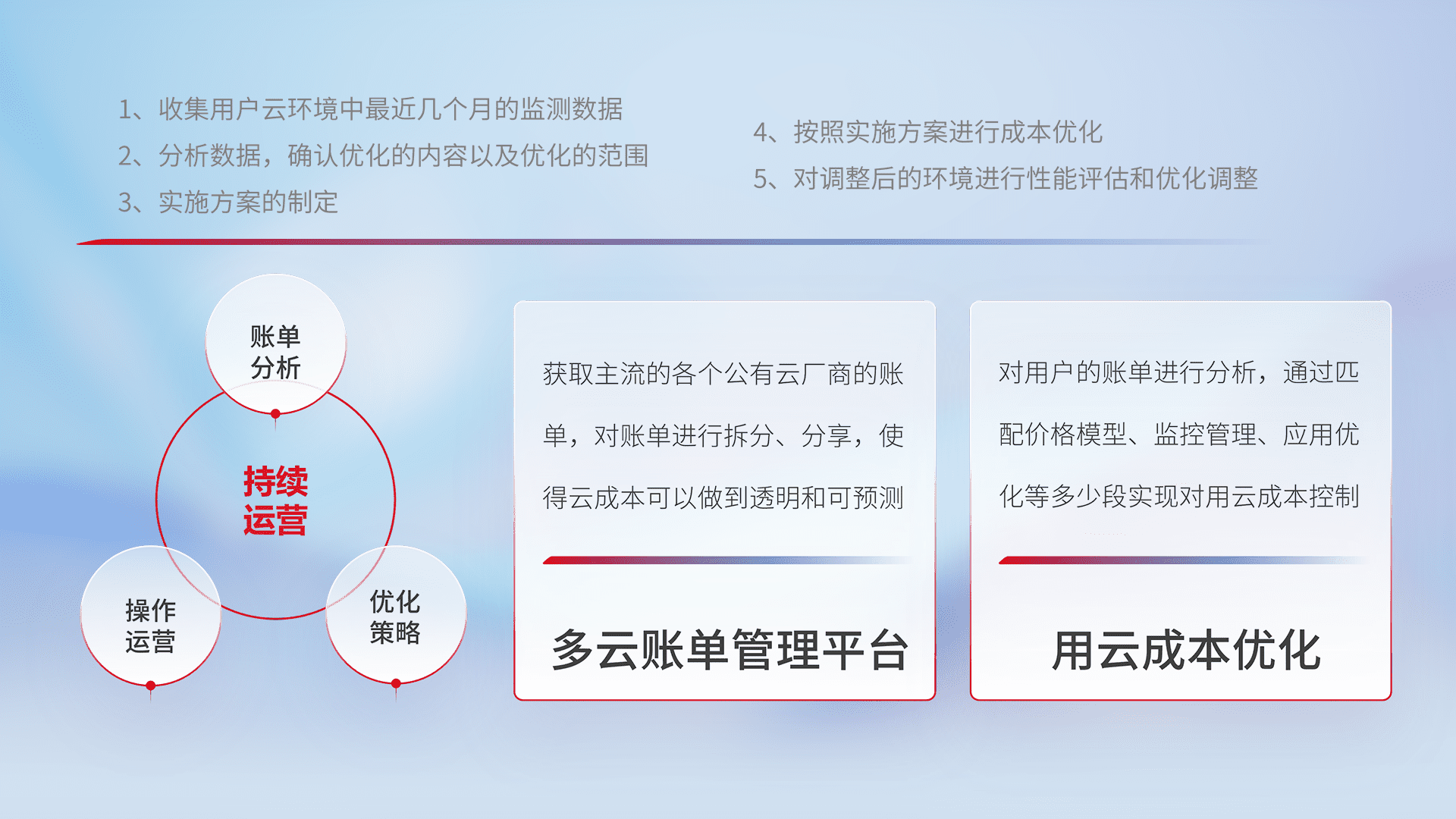 运用智能化工具分析云资源,,提供日常费用可视化工具,,自动账单拆分,,,,成本优化云上费用,,,,降本增效。。。