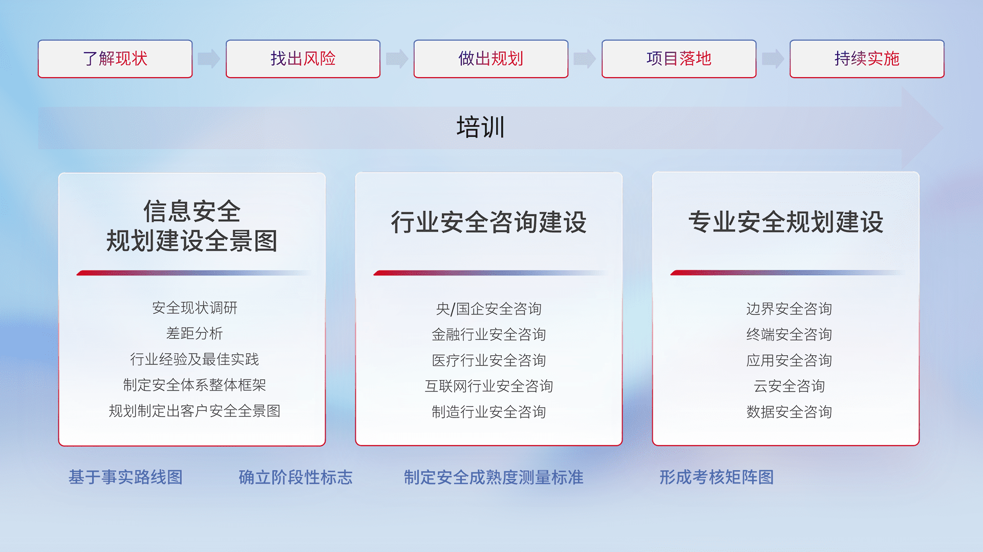 通过专业的法律咨询解读、、、合规架构体现、、差异化解决方案、、、、测试实施支持等服务,,为客户量身打造等保合规体系。。