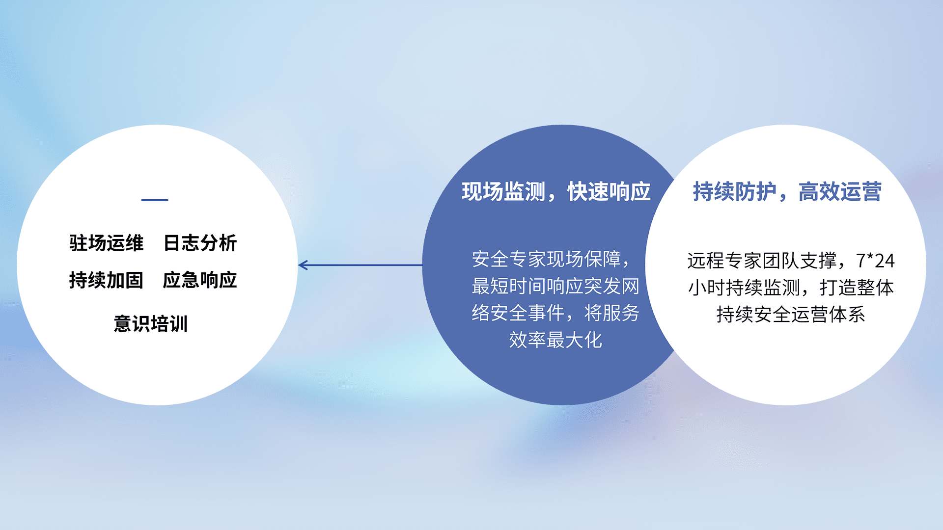 针对客户行业特性,,提供专属的一站式安全管理服务,,,,帮助客户全面感知网络空间威胁,,通过安全专家的线上、、、线下防护支持,,实现风险闭环,,,将安全保障常态化,,,为客户打造常态化安全运维运营服务。。。